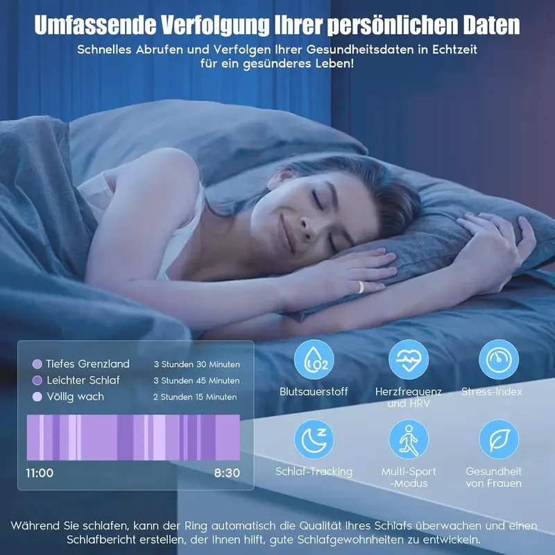 Ring – Wellness Tracker ✨ Intelligent Health Monitoring ✨The Smart Ring is a versatile health monitoring device. It tracks heart rate, calories burned, sleep patterns, menstrual cycle phases, stress levels, and emotions. Perfect for men and women, it offers gesture control for added convenience. Stay connected with your health in real-time. 🌟Key Features·Heart Rate: Monitor your heart's activity.·Calories: Track your daily calorie intake.·Sleep: Analyze your sleep patterns.·Menstrual Cycle: Track phases for health insights.·Stress & Emotion: Gauge your stress levels and emotions.·Gesture Control: Use gestures for easy interaction.CompatibilityElevate your health monitoring with the Smart Ring. It combines multiple health metrics into one sleek device. Ideal for anyone looking to enhance their health awareness. Stay informed and active with this innovative accessory. Android & iOS compatible. 📱💻